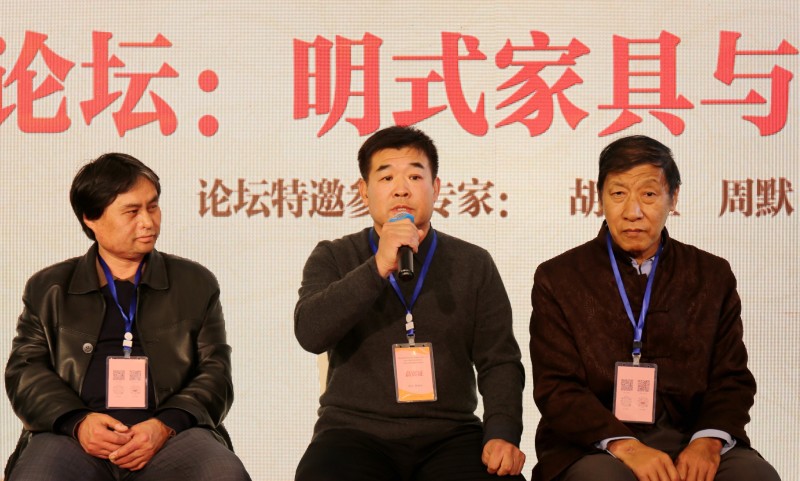 邵氏紅木董事長邵桂嶺先生(中)在“明式家具與社會時尚論壇”上發(fā)言