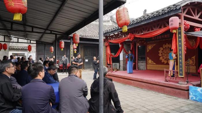 北京故宮博物院著名古建專(zhuān)家李永革老師還特意登著梯子,查看“大清雍正”的年款。最有意思的是,領(lǐng)導(dǎo)專(zhuān)家們圍坐在曲水流觴的古沉木前歇息品茗,一邊聽(tīng)著著名豫劇表演藝術(shù)家演唱,真是“很河南”啊。