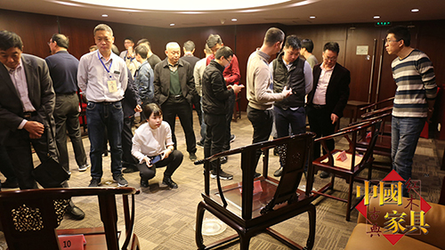 ▲圈椅審美大會,現(xiàn)場參會者在選評家具
