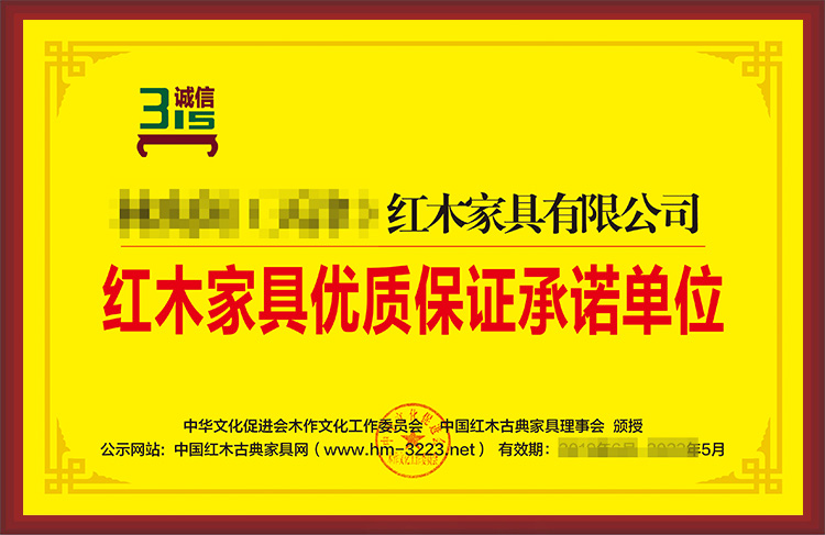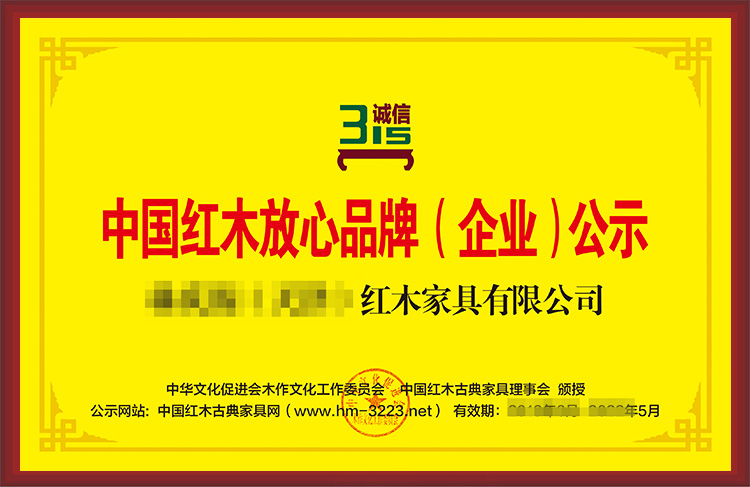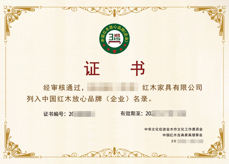 中國(guó)紅木放心品牌資質(zhì)證書(shū)示例