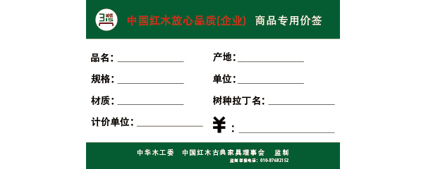 中國(guó)紅木放心品牌可使用價(jià)簽與商品標(biāo)識(shí)示例