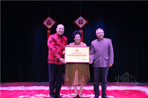 陳麗華女士、遲重瑞先生代表中國紫檀博物館接受“中國紫檀文化研究特別貢獻(xiàn)單位”榮譽(yù) 研究會成立意義深遠(yuǎn),是傳承中國優(yōu)秀傳統(tǒng)文化,傳播中國紫檀文化的切實舉措