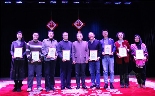 北京故宮博物院研究員、中華木工委學(xué)術(shù)委員會主任胡德生為“2016中國紫檀文化研究貢獻(xiàn)人物”頒發(fā)榮譽(yù)證書