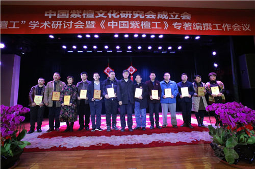 2月18日,“中國紫檀文化研究會成立會、紫檀工學(xué)術(shù)研討會暨《中國紫檀工》專著編撰工作會議”在中國紫檀博物館麗華閣成功舉辦。