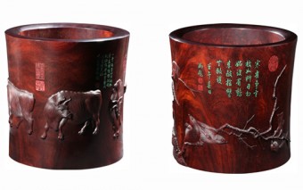 《五牛圖》《寒雀圖》工美精雕筆筒鑒賞