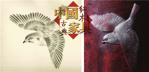 不過,能夠把平面圖案轉(zhuǎn)化成為立體圖案,這還僅僅是一小步,如何通過木雕的藝術(shù)形式,把原作的氣韻與靈動再現(xiàn)出來,并賦予其木作獨特的美律,為名作加分,這才是首要的。