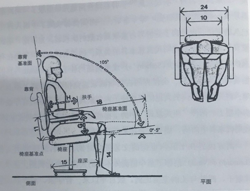 西方世界在十五六世紀(jì)的文藝復(fù)興時期,著名的畫家達(dá)文西(Leonardo de vinci)創(chuàng)作了至今仍流傳不輟的人體黃金比例圖,顯示人體軀干、四肢與頭的完美比例。數(shù)百年以來,哲學(xué)家、數(shù)學(xué)家、藝術(shù)家與理論家等,不斷地對人體尺度進(jìn)行研究,也累積了大量人體測量的數(shù)據(jù)。經(jīng)過不斷地分析、研究與整理后,于19世紀(jì)下半葉產(chǎn)生了“人體測量學(xué)”的新學(xué)科,并有專書問世。不過,這些研究大多從美學(xué)的角度出發(fā)去探討人體的比例關(guān)系。一直到第二次世界大戰(zhàn)前后的20世紀(jì)40年代,為了應(yīng)一些軍事設(shè)施與航空工業(yè)的需求,企圖使人與環(huán)境、空間或設(shè)施產(chǎn)生有效率與充分的利用,人體測量學(xué)逐漸運(yùn)用于實際的生活環(huán)境中,并從而引起建筑師與室內(nèi)設(shè)計師的重視,將之運(yùn)用到整個建筑和室內(nèi)外的環(huán)境設(shè)計中,重新審視室內(nèi)家具的尺寸與環(huán)境空間的調(diào)適,其中人體與座椅之間的關(guān)系尤其備受矚目。在人體坐著時的視覺區(qū)域和視線范圍所及之視聽空間下,考慮其功能、造型與舒適性,分出高級人員用椅、秘書椅、一般用椅、制圖椅和長靠背椅等,并定出關(guān)鍵尺寸,包括座高、座深、座寬(分坐面與包含兩側(cè)扶手后之總寬)、座面傾斜度和靠背之傾斜度,扶手的高度和長度,與兩人座以上合理舒適的空間間隔等等。