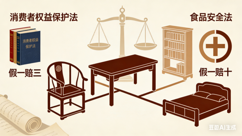 在法律層面,“假一賠三”是《消費(fèi)者權(quán)益保護(hù)法》為普通商品設(shè)立的底線,適用于絕大多數(shù)消費(fèi)場景。而“假一賠十”原本是懸在食品、藥品領(lǐng)域的“達(dá)摩克利斯之劍”,源于《食品安全法》對民生關(guān)鍵領(lǐng)域的特殊保護(hù)。當(dāng)這套更嚴(yán)苛的標(biāo)準(zhǔn)被移植到紅木家具行業(yè)時,其象征意義已遠(yuǎn)超法律條文本身。