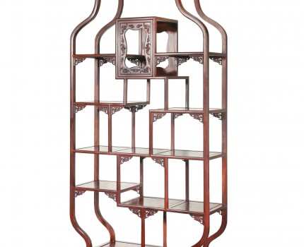 金啟元紅酸枝花瓶形多寶閣紅酸枝花瓶形多寶閣材質(zhì):紅酸枝木尺寸: 96cm*32cm*196cm 此款多寶格選用上等紅酸枝木精工細作,外觀