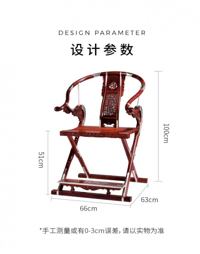 此款交椅,通體采用檀香紫檀木制作而成,原型收錄于《明式家具珍賞》。